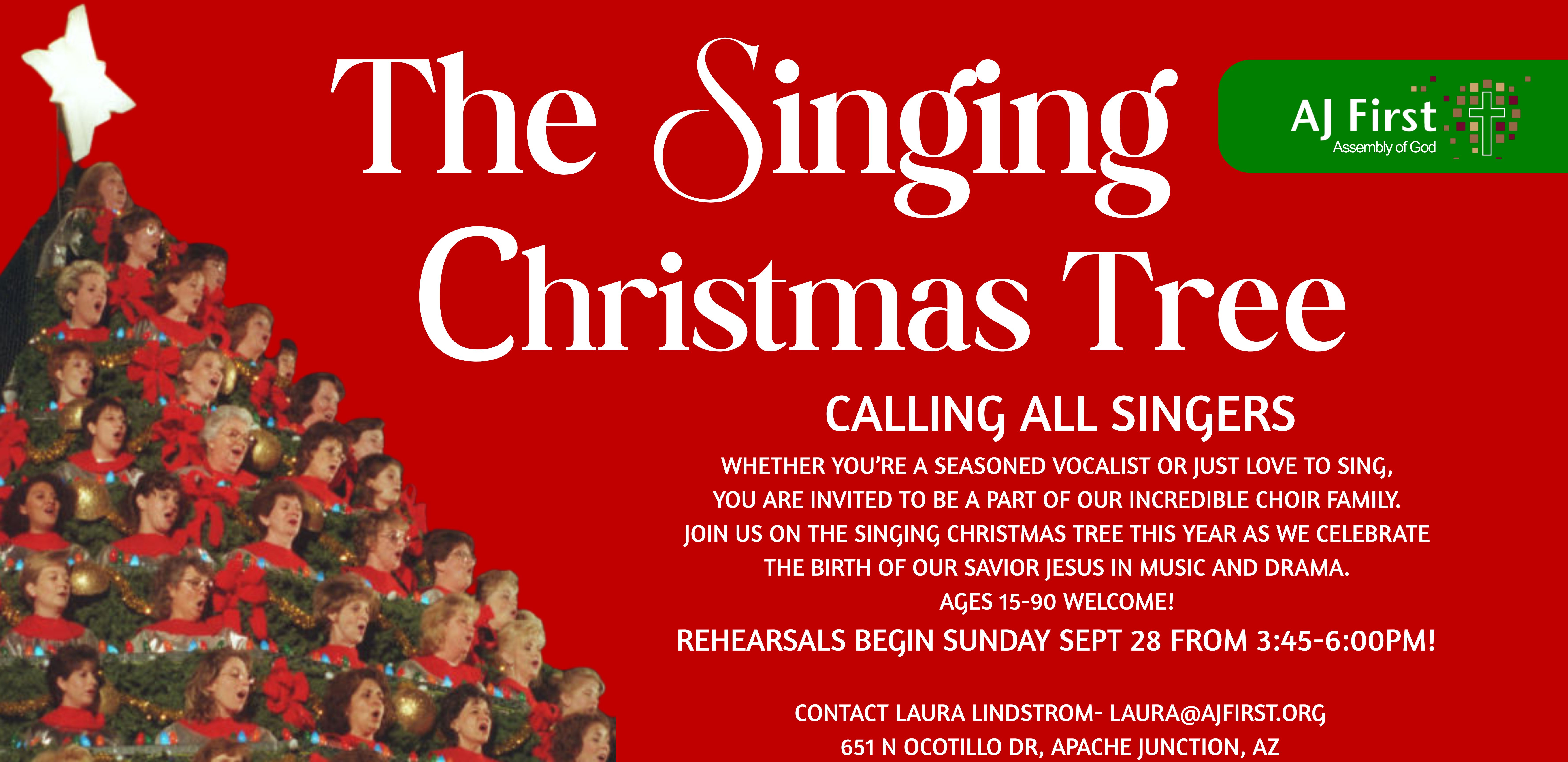 Calling all Singers! Whether you’re a seasoned vocalist or just love to sing, you are invited to be a part of our incredible choir family. Join us on the Singing Christmas tree this year as we celebrate the birth of our Savior Jesus in Music and Drama. Ages 15-90 welcome!